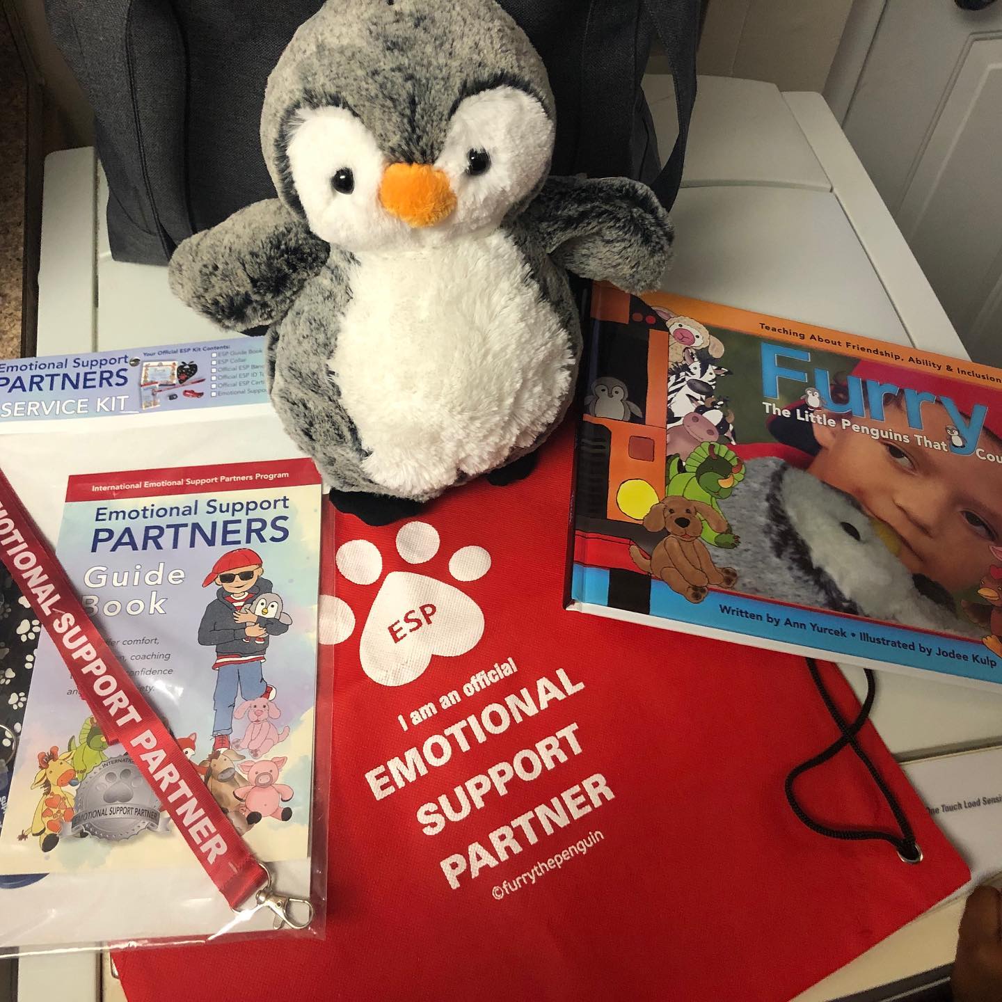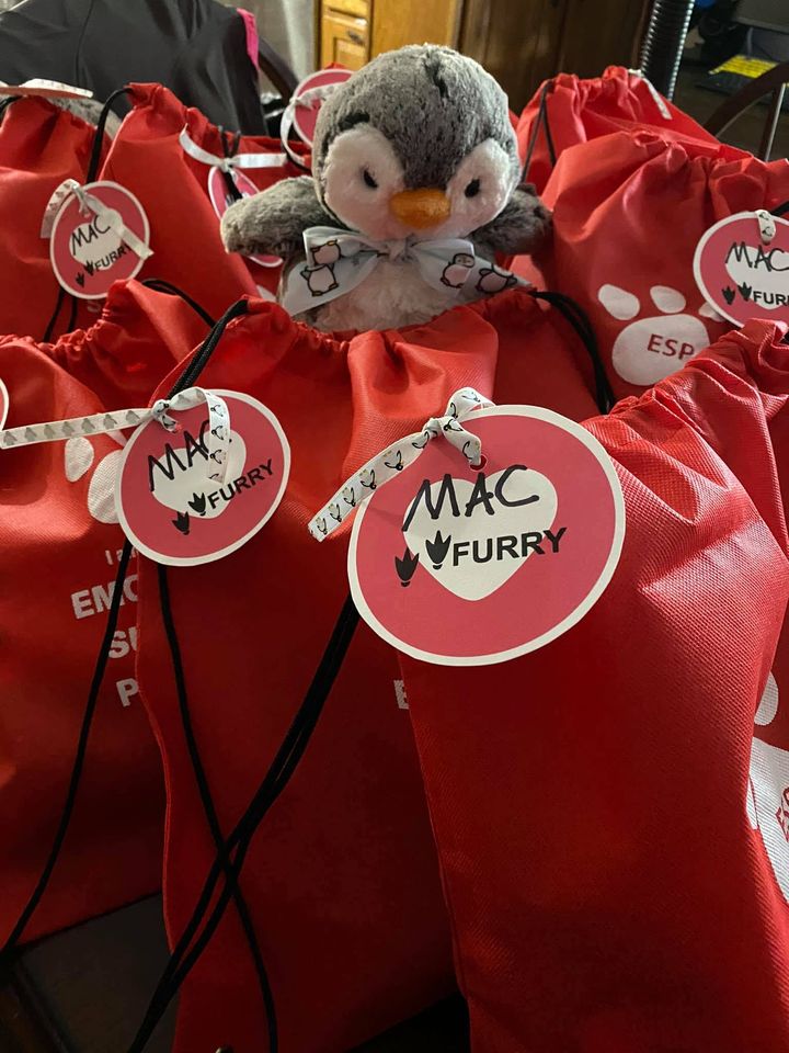 This year he has decided to open and run a store called MAC FURRY ROCK RED SHOES to raise money so that children who are hurting can get their own Furry or Stuffie and the Furry the Penguin Cares Book. He buys them at cost to give them away.