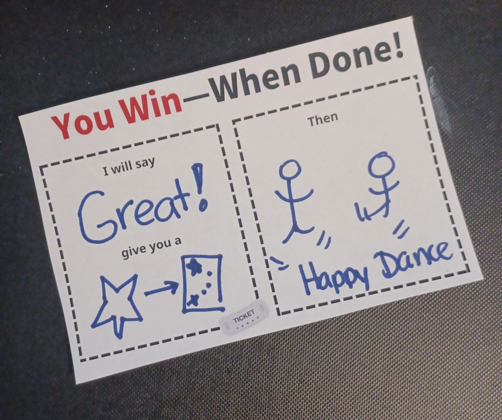 - When done, I will say “Great job!” and give you a sticker to put on ____