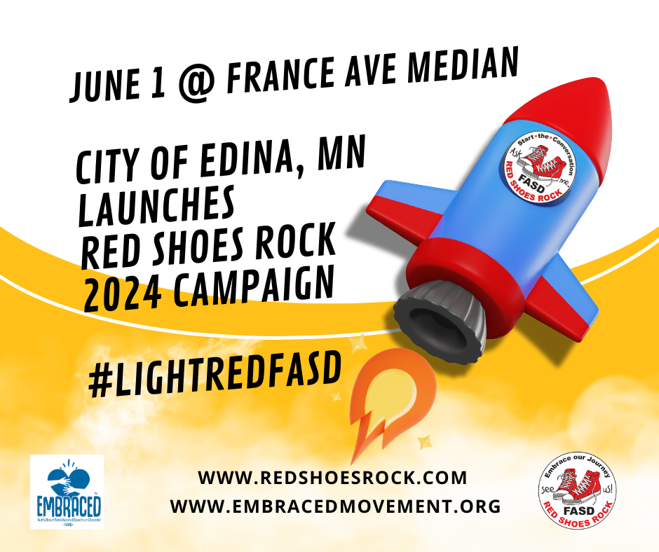 We are excited to announce our first Red Shoes Rock FASD Aware launch site! The City of Edina, Minnesota is lighting up France Avenue Median in Red to announce our Red Shoes Rock FASD Aware 2024 campaign launch. We are so grateful. If you are in the nearby area tonight we ask for photos youContinue reading "EDINA, MN FRANCE AVE to Launch #LightRedFASD Campaign"