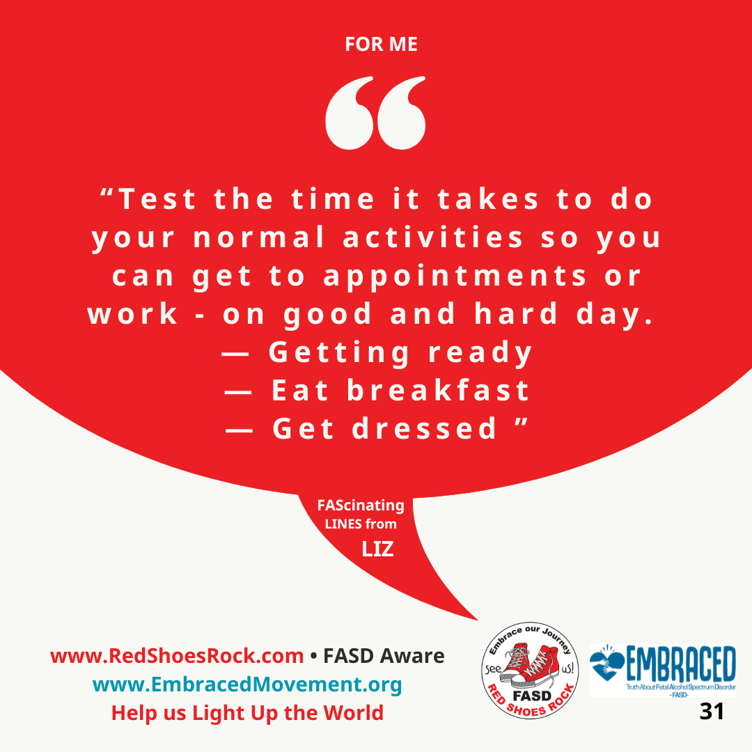 Becoming overwhelmed can happen quickly when you live with brain and body differences from prenatal alcohol exposure. This week, Mom and I are taking you on an adventure of ideas to understand and help you. A week through amazing overwhelm. 1. Focus on the here and now: Remind yourself to stay calm in the presentContinueContinue reading “7 Strategies for Overwhelm”